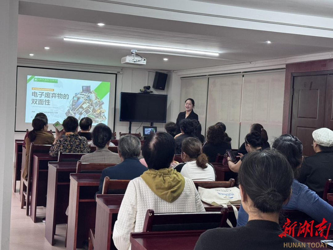 长沙环境保护职业技术学院的“电子焕新 绿色同行”项目,让电子废弃物“变废为宝”不再是空想。志愿者把科普搬进洪江小学,通过《电子垃圾变形记》的视频拆解演示,让孩子们直观了解电子废弃物的 “前世今生”;在井旺社区的集市上,知识抢答、废旧元件手工制作等互动环节,让居民在动手实践中读懂环保价值。