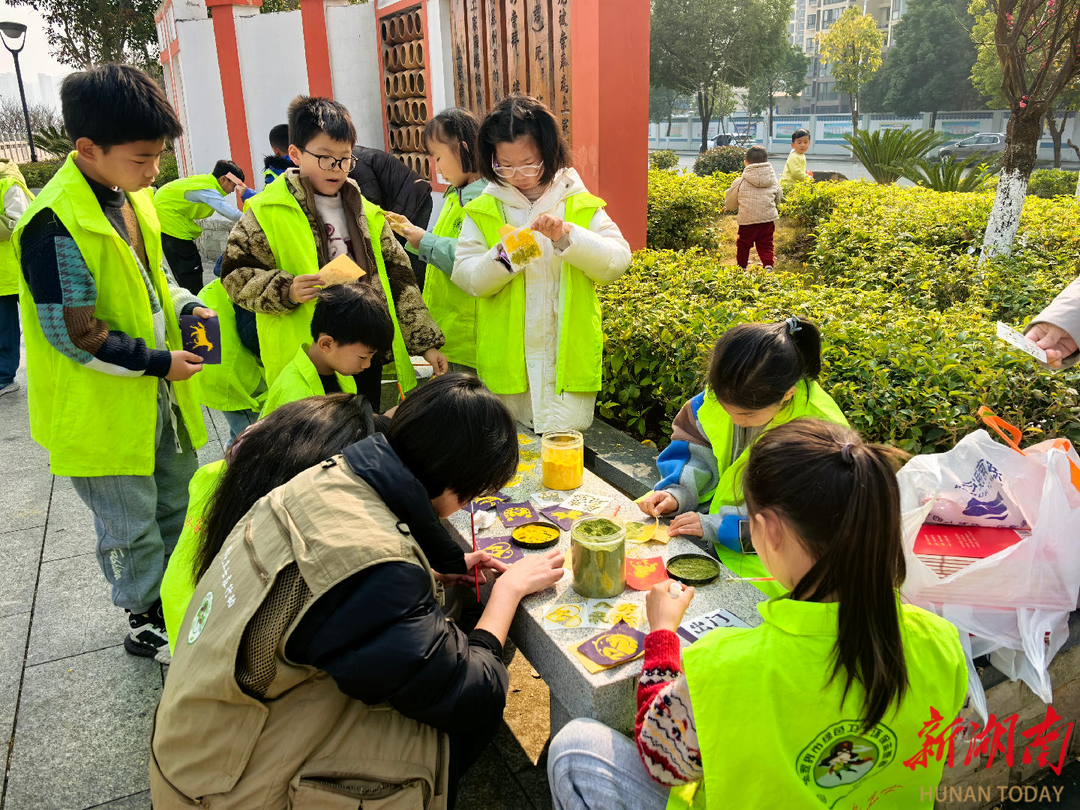 1月18日,在张家界市生态环境局的指导下,张家界市爱盟公益协会、绿色卫士张家界大队联合永定区官黎坪街道鲤鱼池社区开展科普志愿活动,创新利用张家界本土草木非遗技艺,将日常厨余中的干橘皮研磨成天然颜料,创作出一张张写有“诸事顺遂”“马到成功”等吉祥话的环保祝福卡片,让非遗技艺在低碳实践中焕发新生。