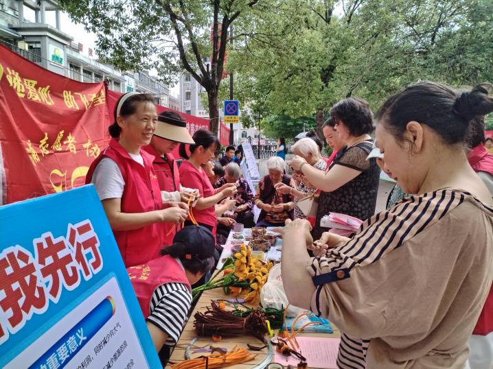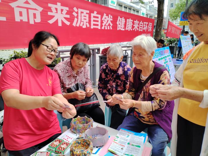 志愿者们成为活动中的一道亮丽风景线。他们不仅向居民发放环保宣传单,还现场示范用废旧扑克牌制作收纳盒,倡导践行变废为宝的环保理念。其中,有趣的互动形式引得不少居民踊跃参与,亲身体验环保创意的乐趣。考虑到高考临近,志愿者们还别出心裁地制作了象征“一举夺魁”的向日葵花朵,赠送给家有高考生的家长。既为考生送上真挚祝福,也将环保理念与美好寓意巧妙融合,传递出别样的温暖。