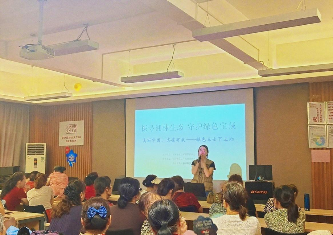 活动开篇,志愿者便带着精心准备的图文资料“搭起课堂”,将湖南多样的森林生态系统“搬进”社区。志愿者用通俗直白的语言,系统讲解保护本土生态的紧迫性与重要性,并分享“随手关灯省能源”“买菜自带布袋”“废旧电池分类投” 等普通人触手可及的环保小窍门,让生态保护从“远方话题” 变成“日常小事”。