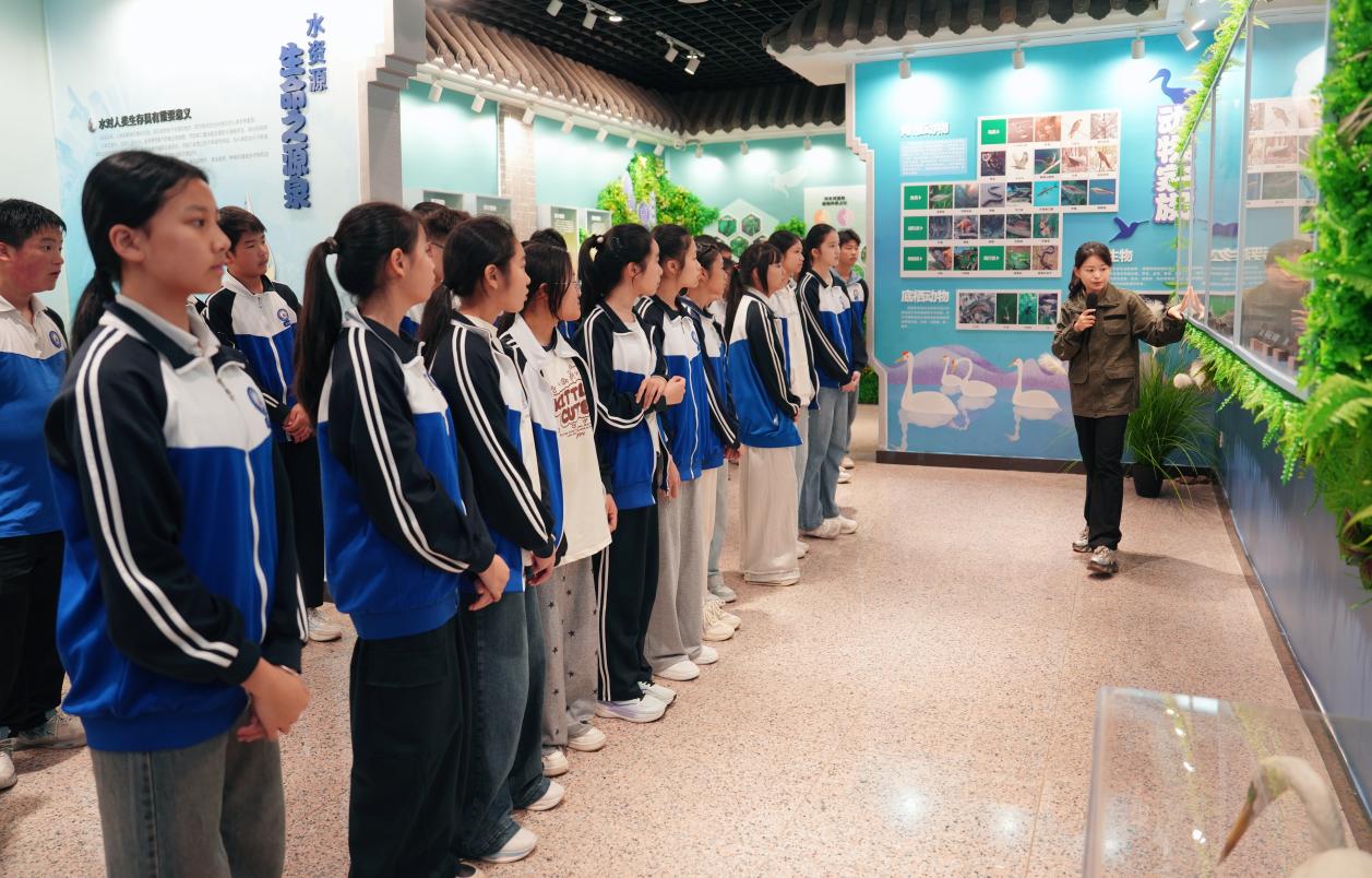 活动首先在湿地公园科普宣教中心拉开帷幕,学生们通过沉浸式学习,深刻领悟湿地生态的奥秘及其对地球生态平衡的不可或缺性在学生心中播下生态环保的种子。紧接着,一系列创意十足的趣味互动游戏,如呼啦圈接力、太空漫步等,寓意资源循环与和谐共生,这样不仅锻炼了团队协作能力,更让生态环境理念在欢声笑语中深入人心。