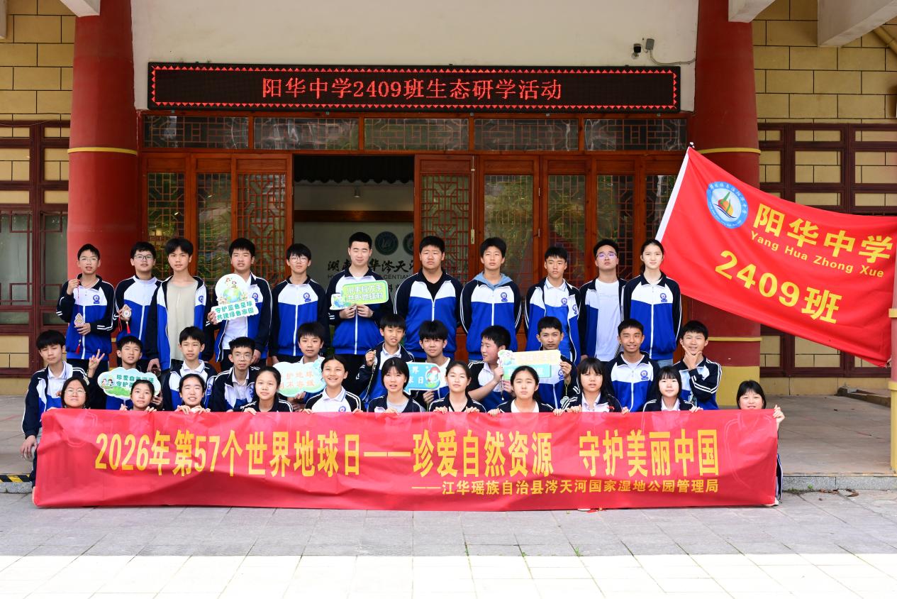 在第57个“世界地球日”前夕,全国自然教育基地、湖南省生态环境科普和教育基地江华瑶族自治县涔天河国家湿地公园管理局携手阳华中学,以“珍爱自然资源 守护美丽中国”为主题,精心策划了一场别开生面的生态环保“盛宴”。