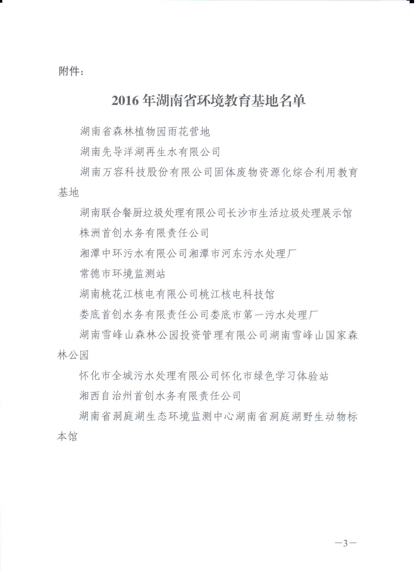 希望获得2016年湖南省环境教育基地称号的单位切实发挥省级基地的示范带头作用,切实发挥环境教育基地的宣传教育功能,为提高公众的生态文明和环境保护意识,为推动湖南的绿色发展做出新的贡献。