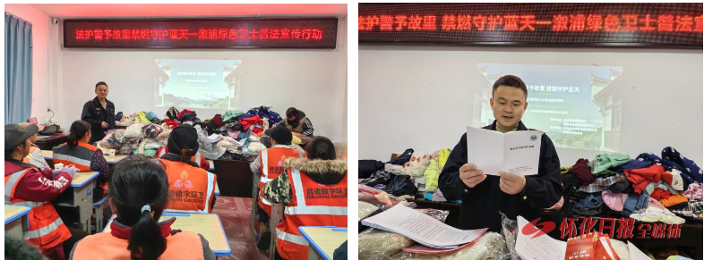 1月8日,在怀化市生态环境局的指导下,怀化市生态环境局溆浦分局、溆浦志愿者协会开展“法护警予故里  禁燃守护蓝天 ”溆浦绿色卫士普法宣传活动,10余名志愿者与30余名环卫工人齐聚现场,共同学习禁燃知识、凝聚宣传合力。