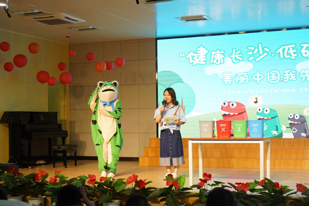 “碳路者”志愿服务团队在六五环境日之际,联合湖南省生态环境事务中心、共青团长沙环境保护职业技术学院委员会走进雨花区和平小学,给200名小学生们带来了一场关于环境健康的低碳课堂。