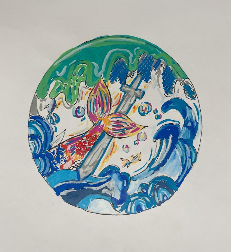 徽章设计聚焦海洋生态保护,画面中海洋元素丰富,有海浪、多彩的鱼尾等,还有类似污染相关的符号。它意在警示海洋污染等问题对海洋生物及海洋生态的破坏,呼吁人们关注海洋环境,减少海洋污染,保护海洋里的生命与生态系统,让海洋能保持健康、充满生机的状态,传递出对海洋生态环境保护的重视与呼吁。