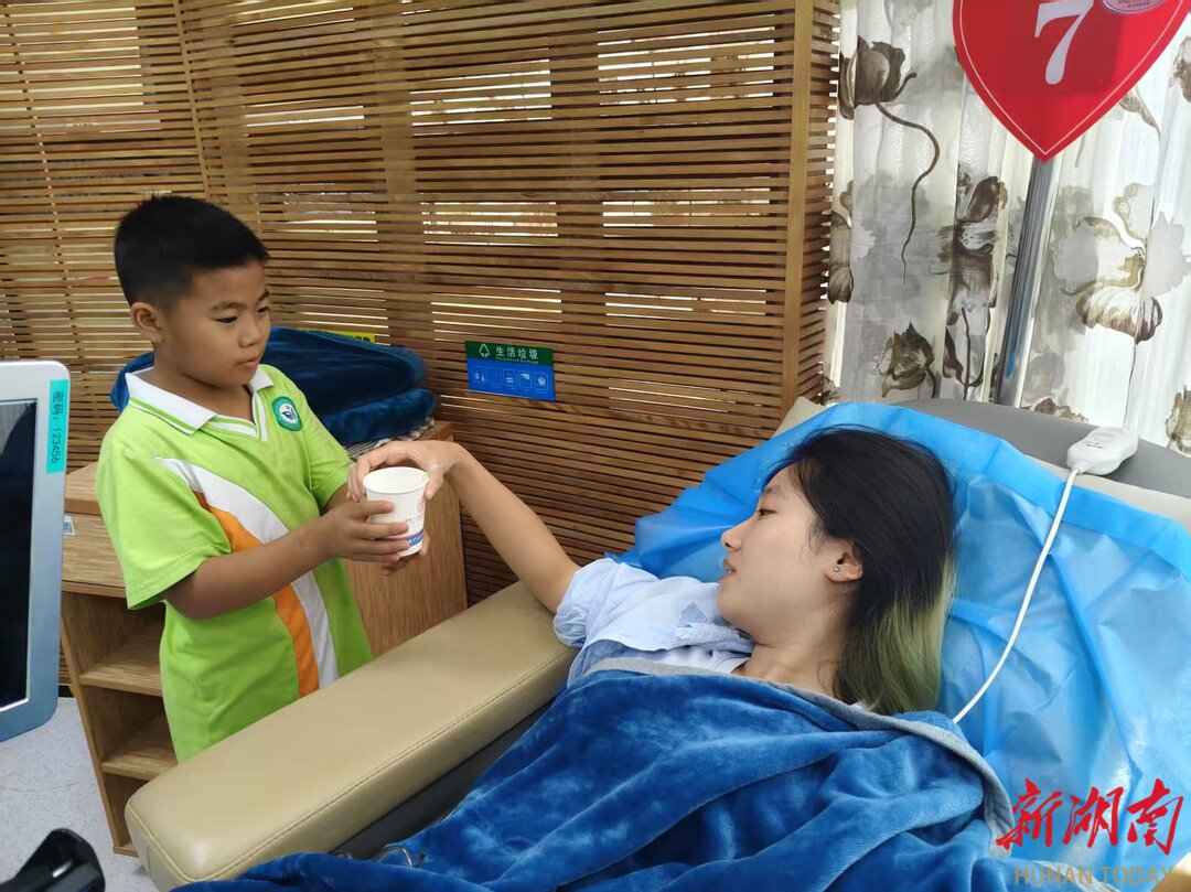 献血从来不是一个人的孤军奋战,家人的陪伴像无声的暖流,让这份爱心在传递中多了份沉甸甸的温度。图中孩子递来温水的动作,是最质朴的鼓励。