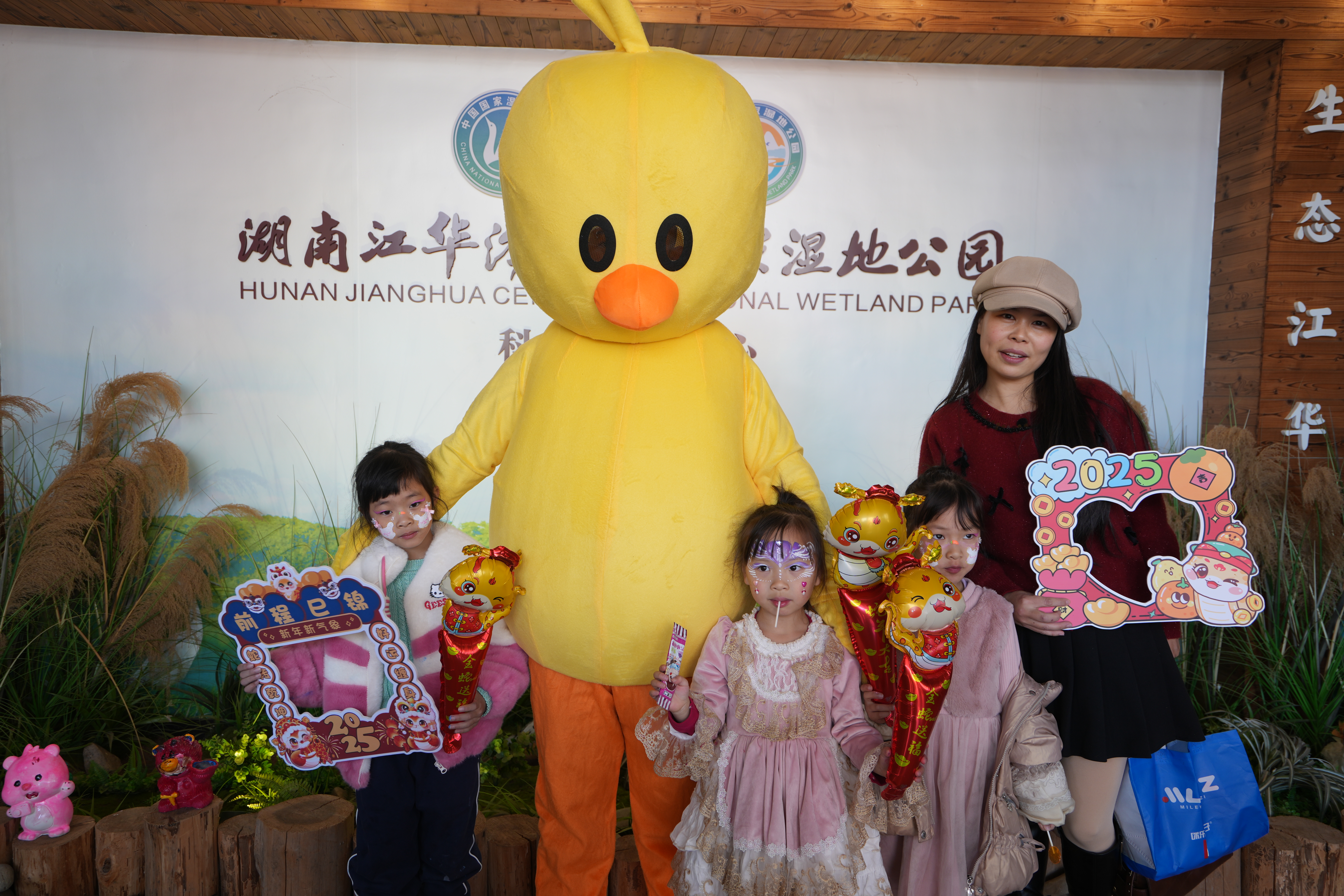 现场还设置了穿戴鸭鸭玩偶服湿地打卡、“福袋中中中”投沙包游戏等趣味环节,市民们纷纷参与其中,享受着湿地保护带来的乐趣。这些活动不仅增强了市民对湿地动物的认知与了解,更为引导公众爱护湿地及动植物栖息环境。