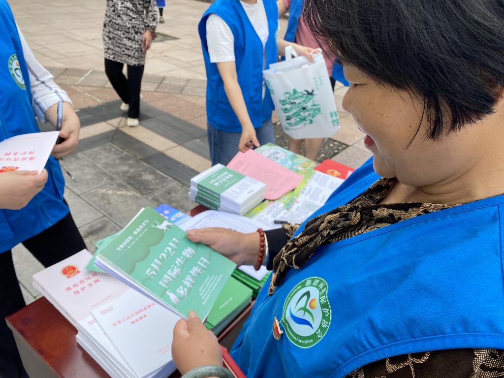 5月22日,娄底市环保志愿者协会在湖南省生态环境厅、省生态环境事务中心、娄底市生态环境局及娄底市林业局的指导支持下,通过设立咨询台、悬挂宣传横幅、发放宣传资料等多种形式,向过往市民普及保护生物多样性知识。