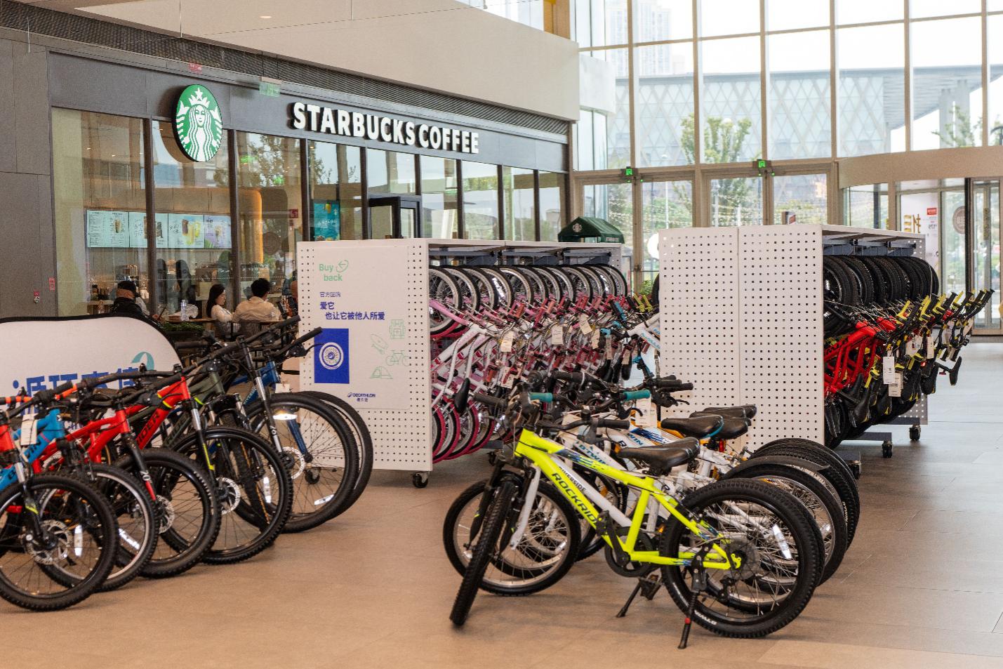 迪卡侬同步开启‘乐在“骑”中’循环市集,提供二手车回收售卖、自行车保养维护、运动装备租赁等服务,让运动生活更具可持续性。