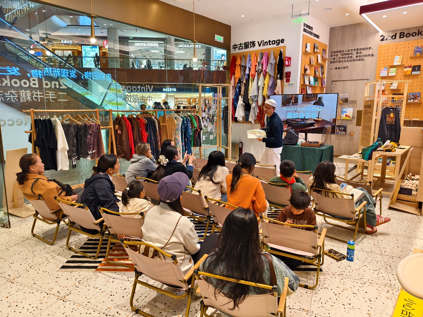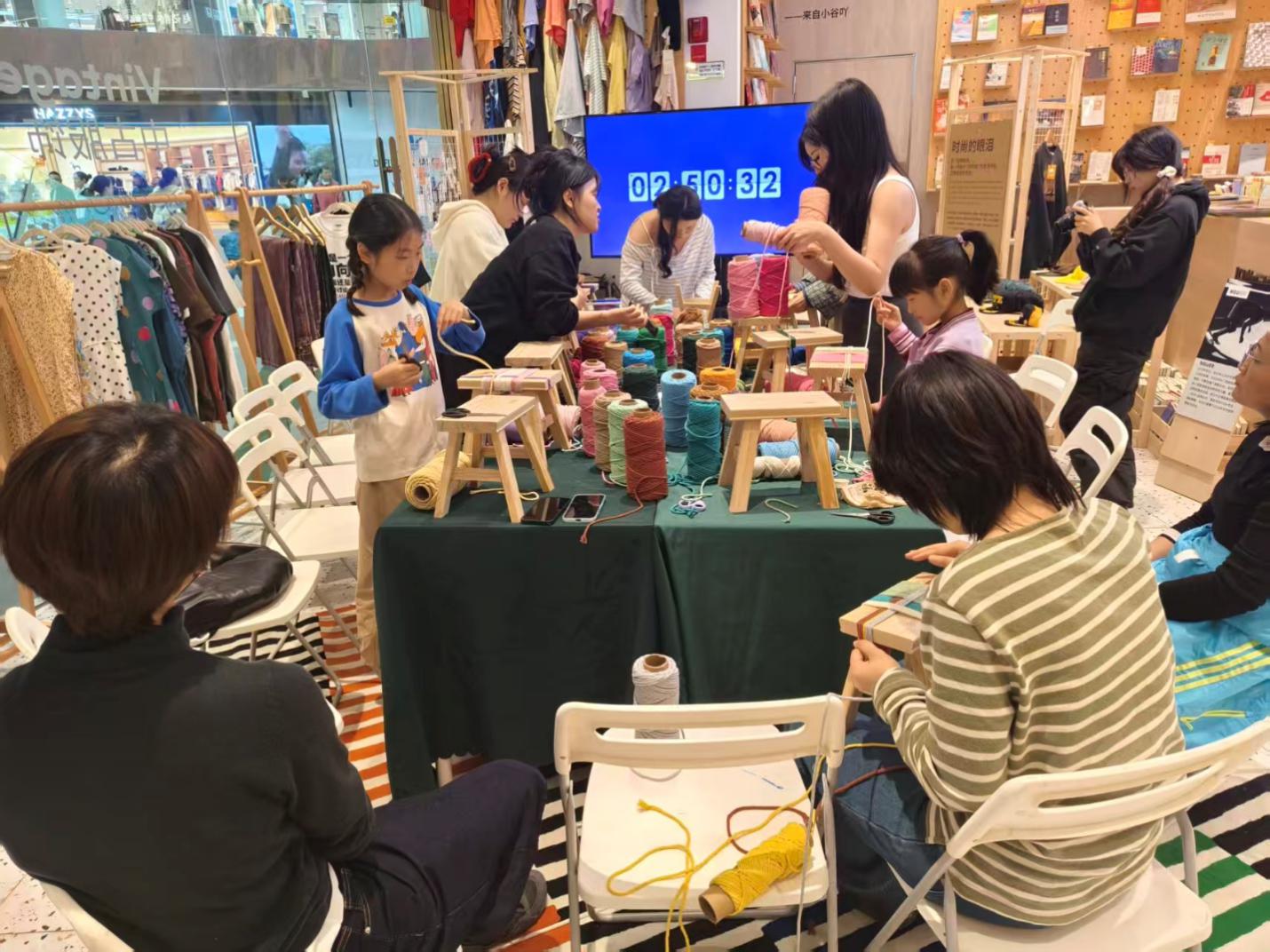 除了实用的循环服务与互动,特色文化活动也为此次主题活动增添亮点。长沙荟聚联合宜家家居、Conner Shop 、Happyzero、长沙市春蕾康复中心等合作伙伴,在旧物新所举办黑胶音乐会、“用毛线绕个循环生活”工坊、公益钩织工坊等活动,在音乐间隙分享环保理念,将闲置家居品与彩色毛线结合,制作出独一无二的 “新朋友”。