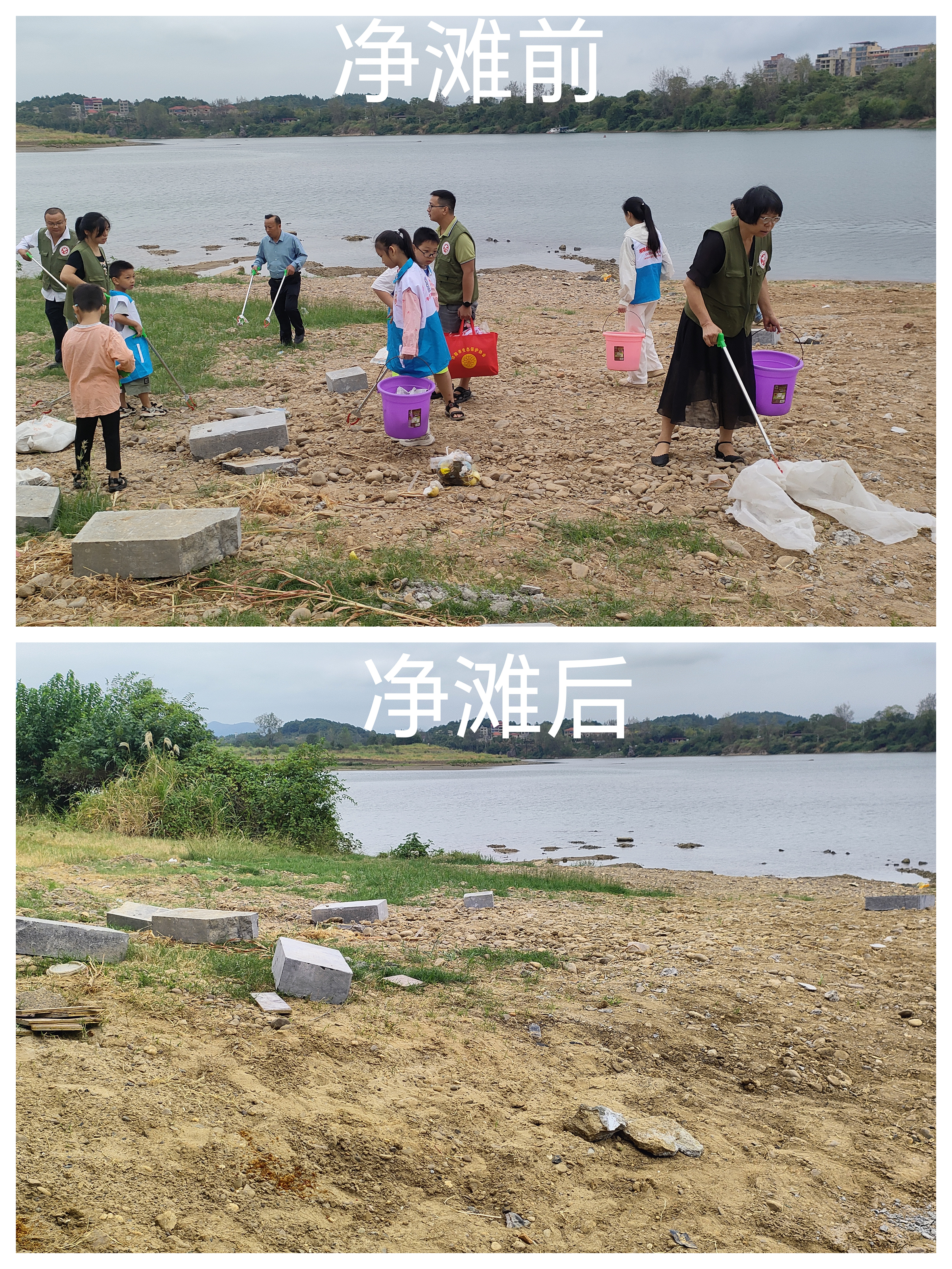 经过共同努力,江滩重现整洁面貌,江水清澈、绿意盎然。一位孩子高兴地表示:“河滩干净了,小鱼小虾也会更开心!捡垃圾活动让我参与感受到保护河流的重要性,下周末我还来,还要喊好多同学共同参与”。