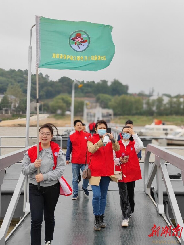 秋风送爽,洞庭清波。10月13日15时,岳阳市委党校2021年秋季科干班全体学员着红色马甲齐聚飘尾码头,开展“守护一江碧水,党员我先行”主题党日活动,以实际行动争做新时代追求绿水青山的党员干部。科干班48名学员到达码头后,岳阳市江豚保护协会志愿者、绿色卫士洞庭湖大队队员谭格向大家分发手套和垃圾袋,向大家讲解活动范围及注意事项。