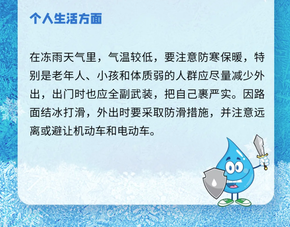 温馨提示:寒潮和低温雨雪冰冻期间,请广大群众高度重视心脑血管健康与传染病预防,严格落实各项防护措施,一旦出现不适及时就医。