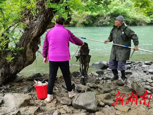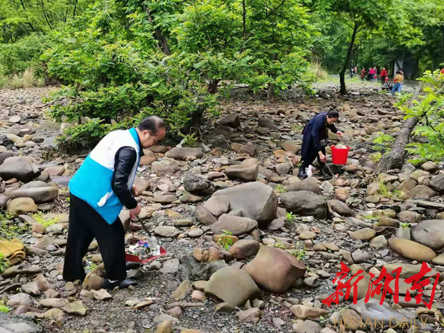 活动当天,天空飘着些微细雨,稍显寒冷。省绿色卫士志愿者永顺大队的志愿者们手持火钳,提着红色胶桶,黑色巨型胶袋及盛装垃圾的铁铲,四散开来,像搜索地雷般巡逻探视。有的弯腰钳起砾石间的纸屑、褪色的朴克牌;有的攀上树杈,摘下挂在枝条上的各色塑料袋、编织袋及衣物、针织毛线服,有的拨开草丛捡拾饮料瓶及木质或铁质建筑垃圾。更有细致入微,小心翼翼用拇食两指夹起碎得不能再碎的玻璃渣......