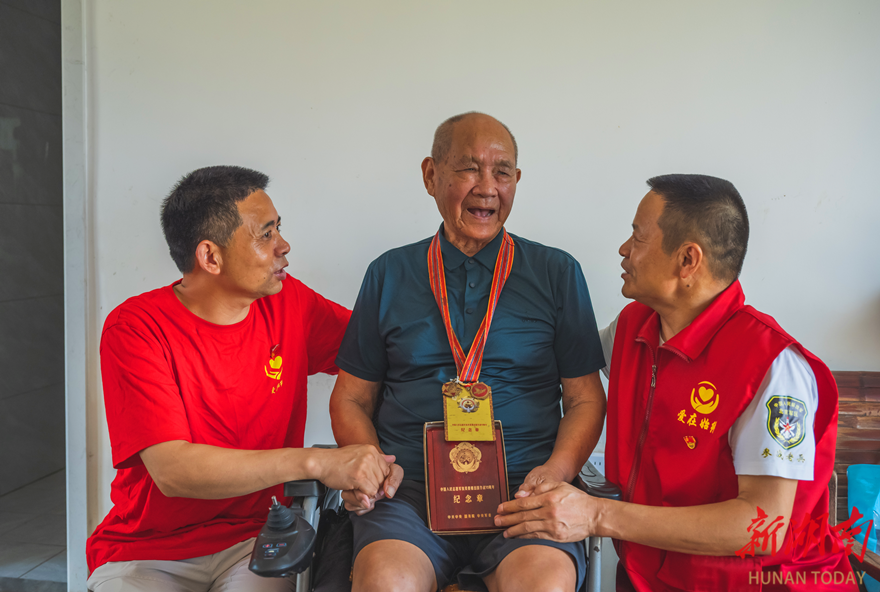八一建军节前夕,爱在始终志愿者协会支部组织开展关爱慰问抗美援朝志愿军老战士活动,志愿者与志愿军老战士同唱一首歌活动。华容县章华镇三河村91岁的杨炳凡老爷爷是抗美援朝志愿军的一名司号员,见到志愿者前来看望他,高兴得当场唱起了中国人民志愿军战歌,仿佛又回到当年吹冲锋号的阵地。