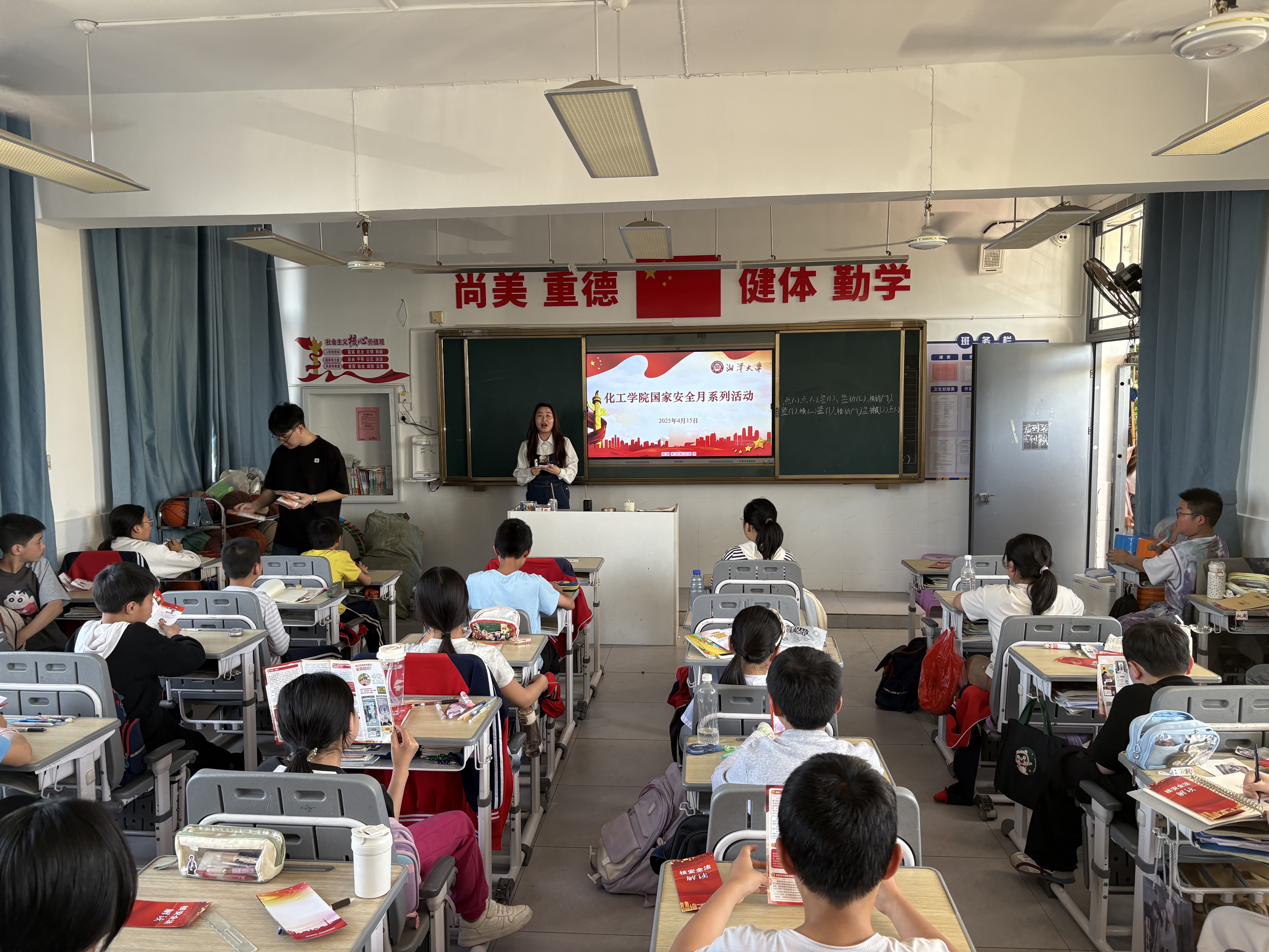 4月15日是国家安全教育日,在湖南省生态环境厅、省生态环境事务中心指导下,绿色卫士湘潭大队联合湘潭生态环境保护协会、湘潭大学化工学院“河小青”团队走进雨湖区长城中学,为六年级学生开展国家安全教育主题宣讲活动。活动以“筑牢安全防线,守护少年成长”为主线,通过知识讲解、趣味实验、互动问答等形式,将食品安全、药品安全、生态安全三大主题融入课堂,引导学生树立总体国家安全观。