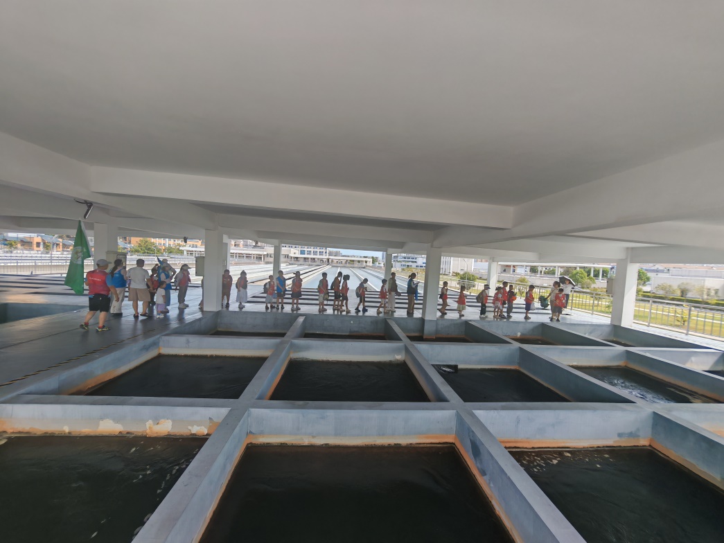 活动伊始,绿色卫士志愿者与托管老师共同为孩子们召开行前说明会,强调参观纪律与安全注意事项,讲解本次活动的意义。合影后抵达水处理厂,在厂区专业讲解员的带领下,孩子们按班级有序列队,沿着指定路线参观了四水厂水处理的各个环节。从湘江水的预处理,到各反应池的深度净化,再到最后的出水消毒,达到饮用水标准。讲解员用生动易懂的语言为孩子们介绍了每一步工艺的科学原理,孩子们认真倾听,不时举手提问,对“污水如何变清水”充满了好奇。