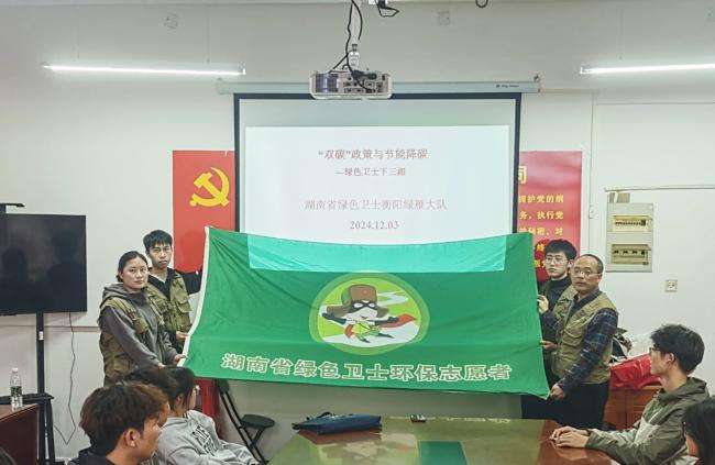 12月3日,湖南省绿色卫士衡阳绿雁大队志愿者联合南华大学环保协会和湖南工学院环保协会,在湖南工学院化学与环境工程学院开展了以“双碳”政策宣传及节能降碳生活方式倡导为主题的志愿服务活动。