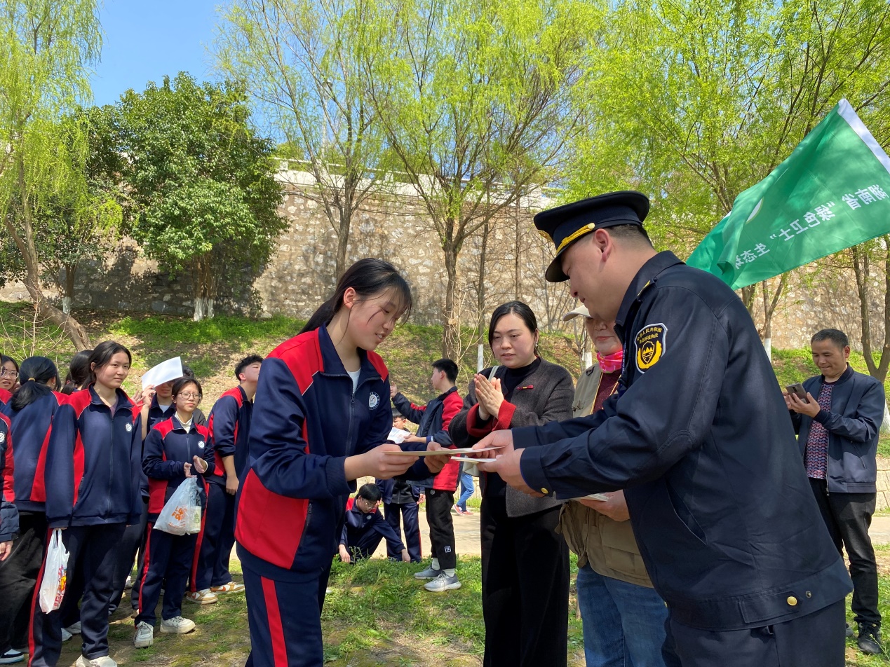 活动接近尾声时,芦淞生态环境分局为全体参与学生颁发“环保公益社会实践”荣誉证书。分局副局长彭海波鼓励学生:“这个证书,不仅是对同学们此次环保行动的高度认可,更是一份沉甸甸的责任传递。希望同学们以此次活动为新的起点,在今后的生活中,真正成为生态文明建设的积极践行者和热情传播者 。”