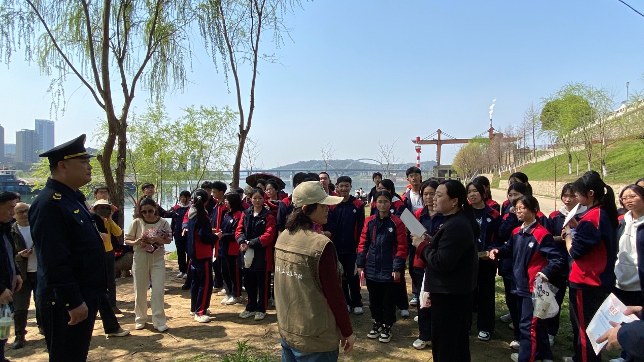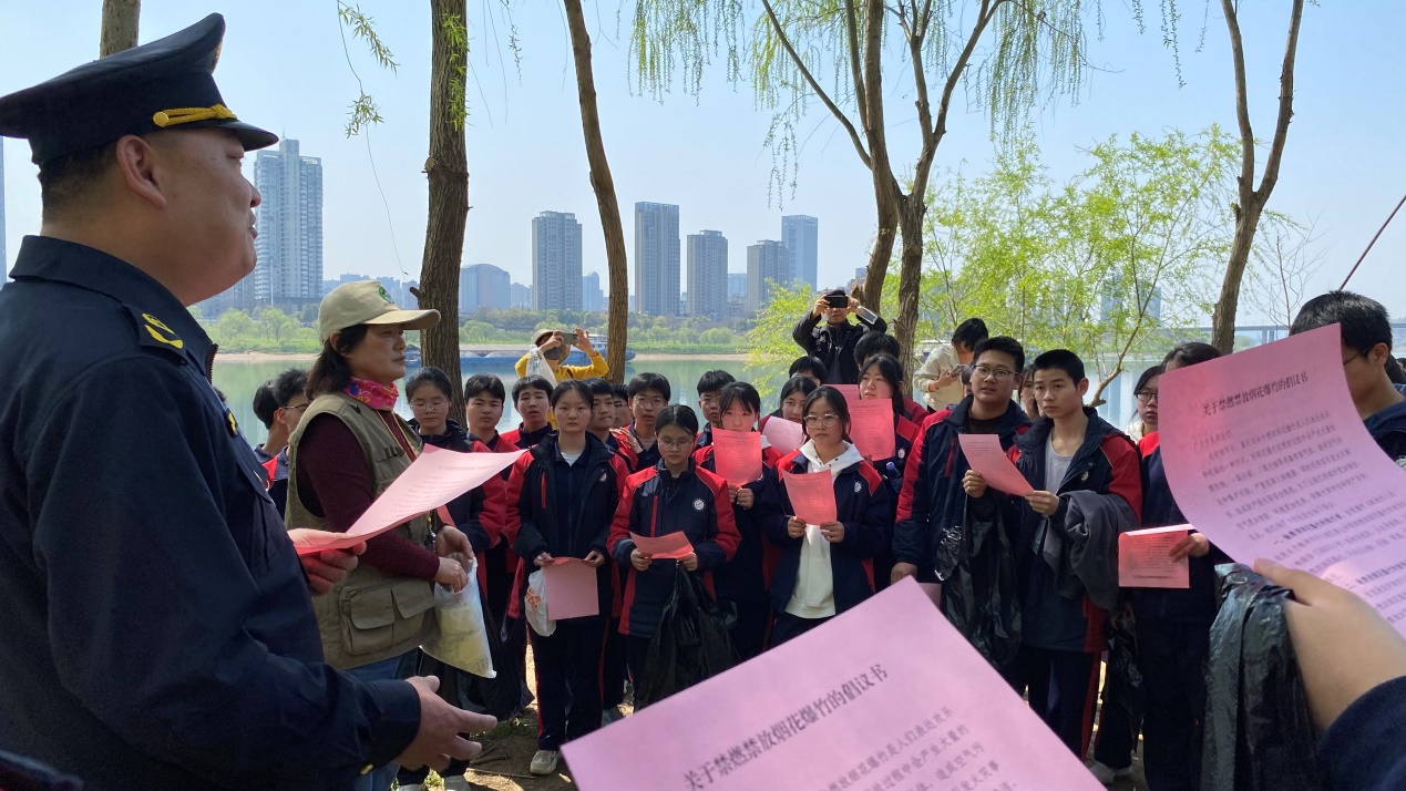 活动把课堂从室内搬到了湘江岸边,让同学们在自然的怀抱中感受环保的魅力。芦淞生态环境分局的相关负责人以一个个生动鲜活的案例,搭配互动问答的形式,深入浅出地为同学们解读《株洲市烟花爆竹禁燃禁放管理条例》背后深远的生态意义。该负责人语重心长地说:“燃放烟花爆竹,看似热闹喜庆,实则后患无穷。不仅会让清新的空气变得污浊不堪,燃放后的残留物还会对土壤和水源安全构成严重威胁 。”随后,他还呼吁同学们化身“环保小喇叭”,凭借“小手拉大手”的强大力量,带动家庭乃至整个社会积极践行绿色生活方式,齐心协力守护我们的蓝天碧水。