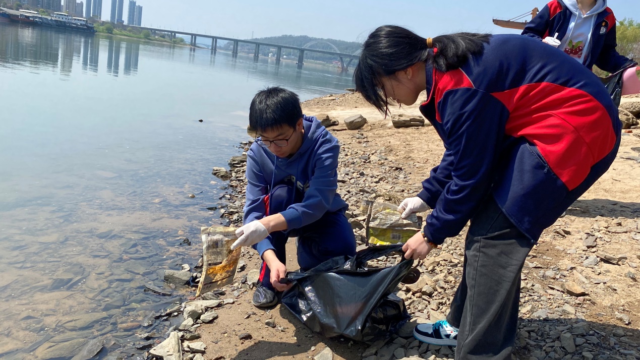 正值第30届世界水日暨第38届中国水周前夕,此次活动特意设置了“守护母亲河”社会公益活动实践环节。芦淞区生态环境分局、水利局工作人员与绿色卫士志愿者带领学生们分成多个小组,有条不紊地开展净滩行动。只见大家的身影穿梭在湘江河畔,手持夹钳、肩背垃圾袋,认真细致地清理着塑料瓶、烟头、槟榔渣、包装袋等杂物。清理过程中,志愿者还现场为同学们讲解垃圾分类知识,帮助大家更好地认识垃圾对环境的危害。水利局专家则结合湘江水系图,用通俗易懂的语言,生动形象地讲解株洲水资源分布与保护现状,引导同学们完成从“知水”到“节水”、从“节水”到“护水”的认知飞跃。学生张铭宸在实践笔记中由衷地写道:“原来节水不只是关紧水龙头这么简单,更需要全社会每个人的积极参与!”