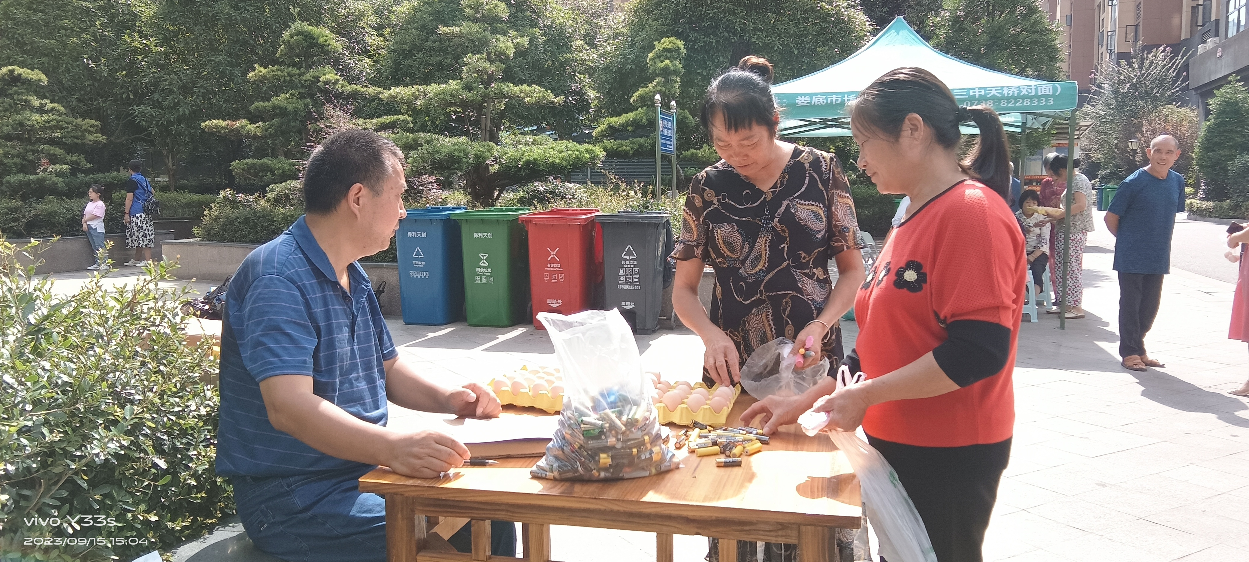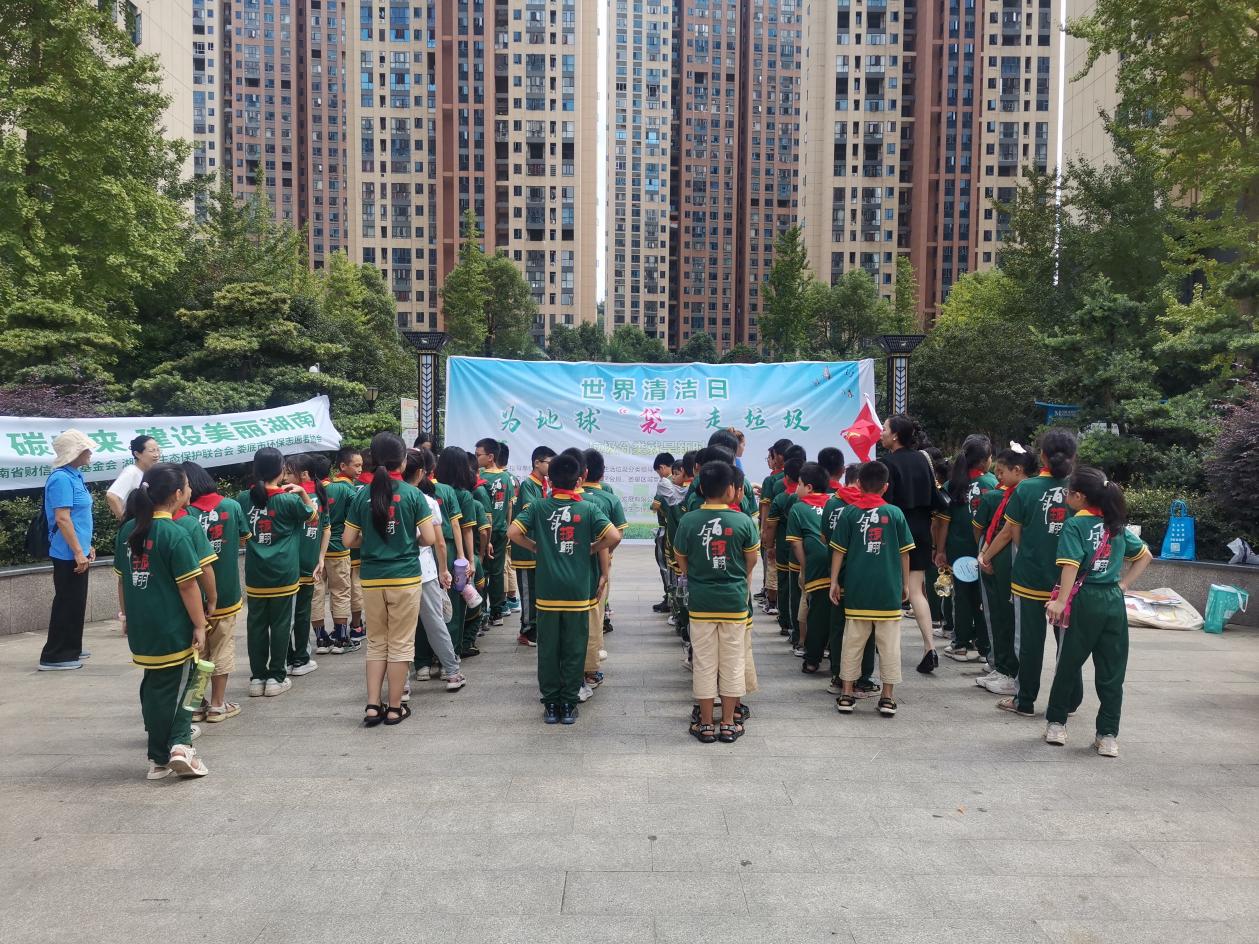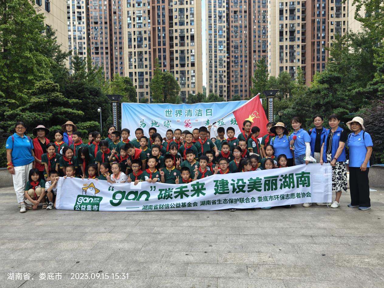 9月15日下午,为迎接世界清洁日,提高民众尤其是学生的环保意识和参与度,在湖南省财信公益基金会、湖南省生态保护联合会、娄底市文明办、娄底市生活垃圾分类领导小组办公室的支持与指导下,由娄星区城管局、娄底市生态环境局娄星区分局、娄底市志愿服务联合会主办,娄底市环保志愿者协会承办,娄底振翩学校、保利天创物业管理公司、富冲社区乐朗口腔医院、娄底市怡然乐居社工中心共同协办的世界清洁日宣传活动在娄星区百弘学府小区开展,该活动以“gan碳未来,建设美丽湖南 ”为主题,通过捡拾垃圾、垃圾分类知识讲解、垃圾分类游戏挑战等形式开展,目的在于将环保理念融入日常生活,倡导学生和居民以实际行动保护共同的家园。