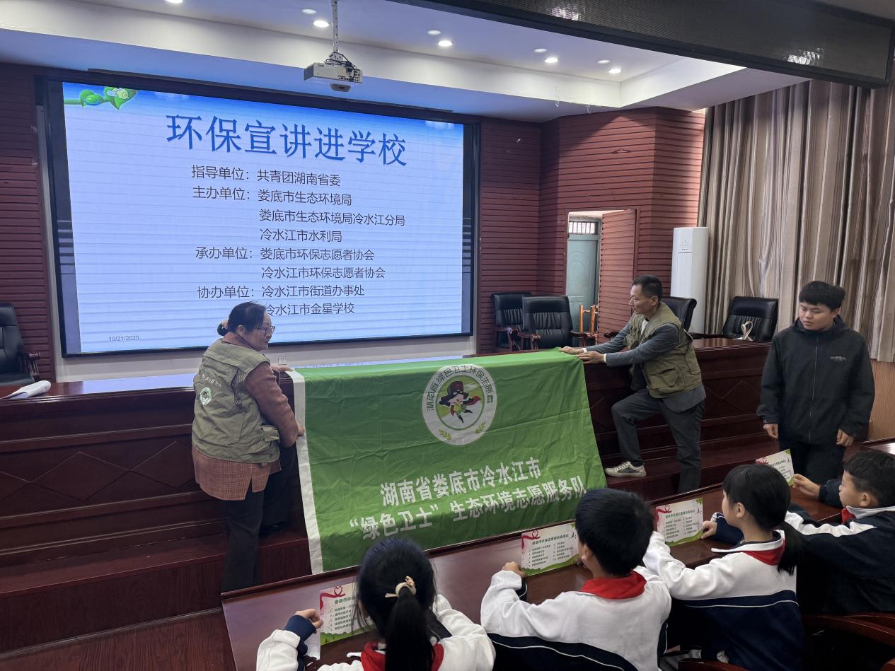 10 月 21 日上午,娄底市绿色卫士湘中大队及湖南省娄底市冷水江市绿色卫士生态环境志愿服务队的志愿者们走进冷水江市金星学校,带着精心准备的教具和故事,为该学校二至五年级的同学们带来了一场生动有趣的水资源保护宣讲活动。