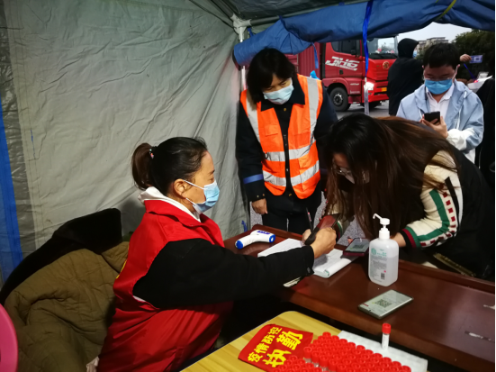 湖南省绿色卫士志愿服务队开展核酸检测志愿服务。