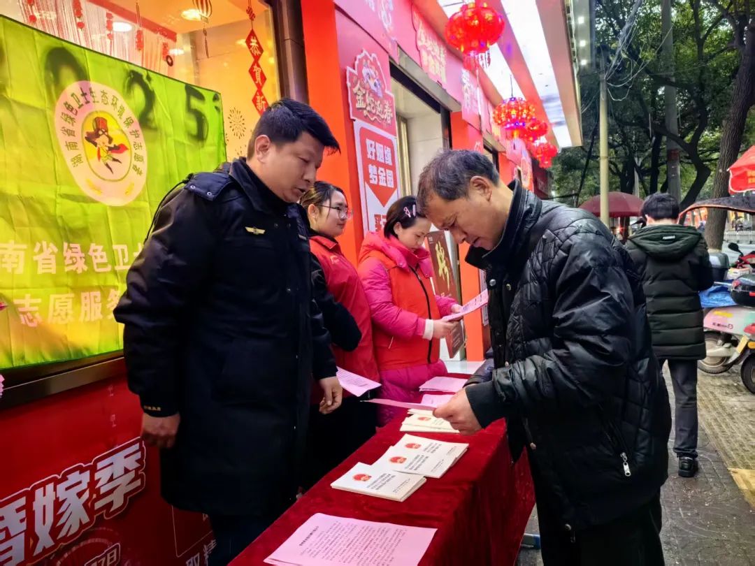 根据《怀化市元宵节烟花爆竹管控工作部署电视电话会议》精神,为进一步加强烟花爆竹禁燃禁放管控,提升居民环保与安全意识,2月11日,怀化市生态环境局溆浦分局、溆浦县“绿色卫士”生态环境志愿服务队联合开展了一场内容丰富多彩、形式多样的禁燃禁放烟花爆竹环保普法宣传活动。