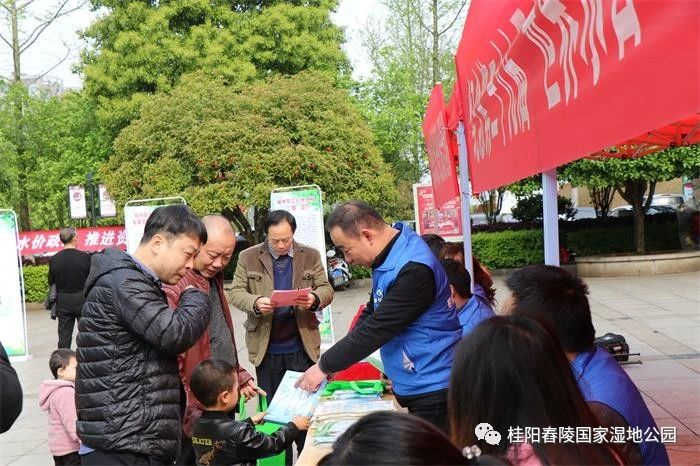 上午9点,络绎不绝的市民群众纷纷闻讯聚集到宣传活动摊位前,他们有的在认真倾听志愿者讲解惜水爱水知识;有的在仔细观看移动展板和标语横幅;有的在向工作人员咨询水资源保护相关法律法规……活动现场热闹非凡,《世界水日、中国水周宣传单》《舂陵国家湿地公园宣传手册》《湿地保护宣传挂历》《郴州山洪灾害防御》等1000多份宣传资料被发放到群众手中,凡是参加活动的未成年人还能免费获得一套学习用品。
