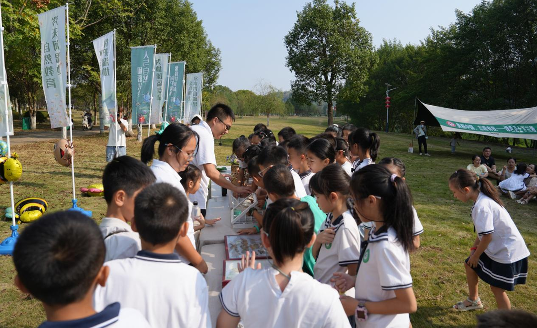 湿地昆虫标本展和湿地昆虫课堂,采用自然课堂结合户外实地教学的创新模式,为亲子家庭打开了一扇通往昆虫世界的大门。讲解员们化身自然使者,生动地介绍了每一种昆虫的生活习性和生态角色,从色彩斑斓的蝴蝶到勤劳的蜜蜂,从微小的蚂蚁到优雅的蜻蜓,孩子和家长们听得津津有味,不时提出各种问题,现场互动频繁、气氛热烈。