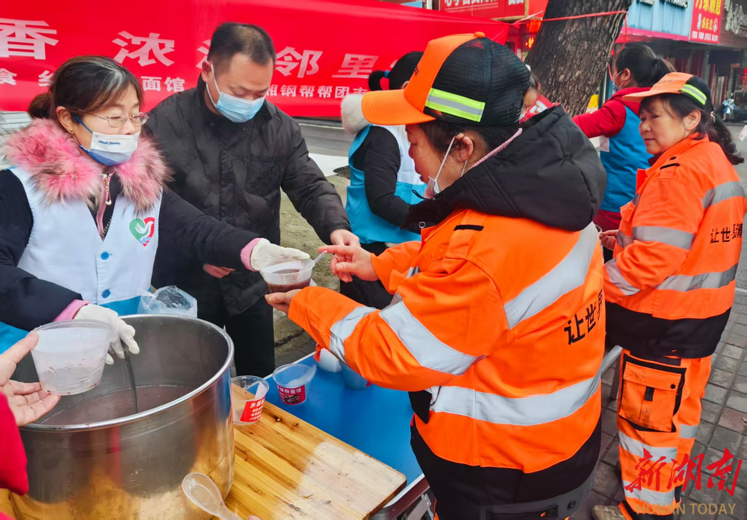 腊八至,年味浓,一碗热粥寄温情。1月26日,在中共湘潭市委社会工作部等部门指导下,湘钢帮帮团志愿者协会携手雨花素食、乡香妹粉面馆等爱心企业,开展“腊八粥飘香 浓浓邻里情”主题送福粥活动,千余份精心熬制的腊八粥,为岳塘街道三株岭社区、纯冲塘社区的居民、孤寡老人、残疾人,以及环卫工人、一线劳动者们送去冬日暖意。