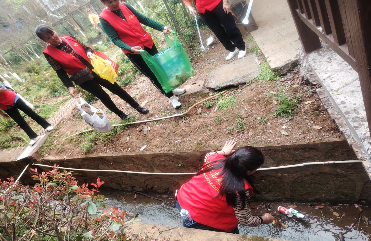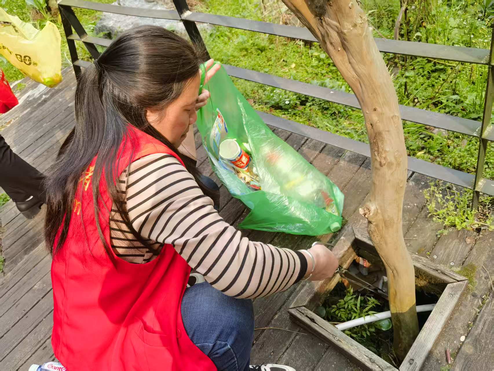 环保志愿者们也没闲着,她们在捡拾植物园内飘落在各个角落的白色垃圾并分类,将可回收物分拣出来交给景区环卫人员,以自身行动倡导市民绿色出行、保护生物多样性,保护态环境。