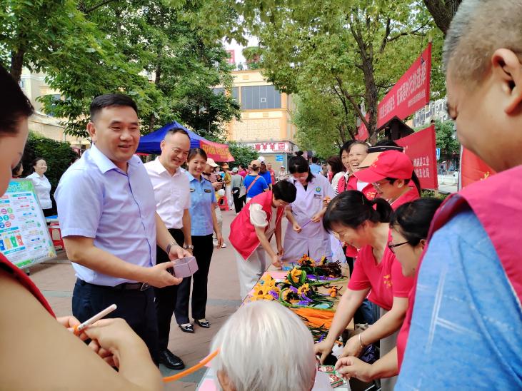 志愿者们成为活动中的一道亮丽风景线。他们不仅向居民发放环保宣传单,还现场示范用废旧扑克牌制作收纳盒,倡导践行变废为宝的环保理念。其中,有趣的互动形式引得不少居民踊跃参与,亲身体验环保创意的乐趣。考虑到高考临近,志愿者们还别出心裁地制作了象征“一举夺魁”的向日葵花朵,赠送给家有高考生的家长。既为考生送上真挚祝福,也将环保理念与美好寓意巧妙融合,传递出别样的温暖。