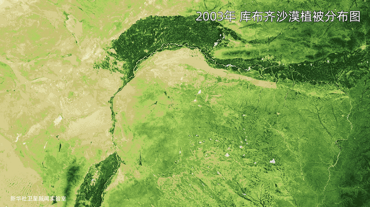 这是库布齐沙漠2003年和2021年的卫星植被分布图对比。