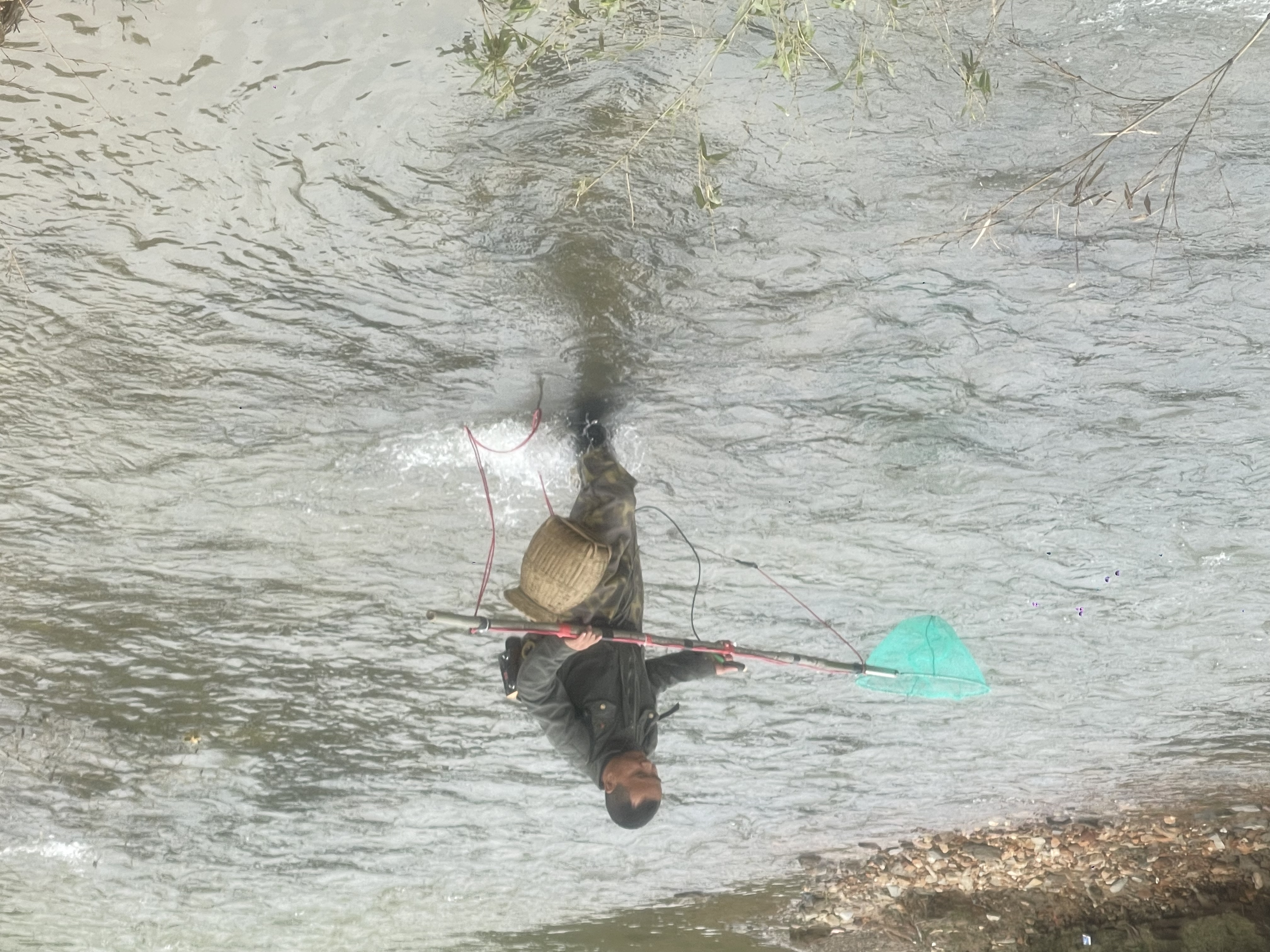 巡护中,发现一村民在小河里电鱼,志愿者现场制止,劝其放生鱼获,并科普相关法律法规。