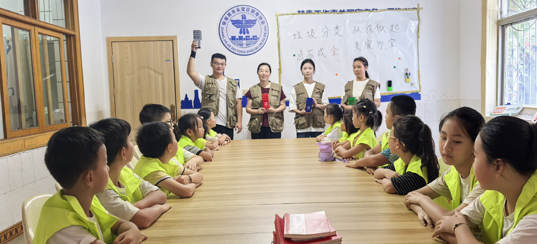 8月21日,张家界市爱盟公益协会与绿色卫士张家界大队举办的暑期第五期公益托管营成功举办首场“变废为宝”环保主题活动。本次活动以“美丽中国志愿有我·绿色卫士下三湘”为主题,通过亲子协作、寓教于乐的方式,将环保理念融入实践,传递绿色志愿服务精神。