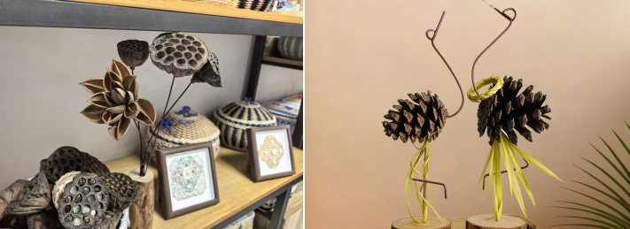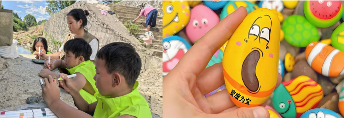 河岸护绿行动中,志愿队清理垃圾并收集自然废弃物,将其制作成松果挂饰、莲蓬摆件与环保石头画,陈列于步道旁,以美育传递环保理念。律师志愿者则结合《中华人民共和国水污染防治法》,讲解“保护河岸生态”的法律责任,强化群众护河守法意识。