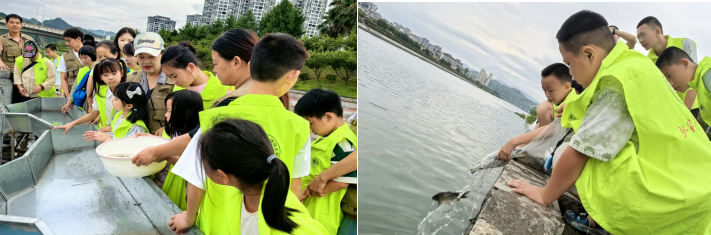 增殖放流活动中,志愿者与亲子家庭在专业人员带领下,投放适宜本地水域的鱼苗。同时,生态环境专家志愿者现场讲解“鱼类净化水质、维持水生生物链平衡”的作用,并结合“上善若水”理念,解读“守护水域就是守护生命”的生态意义;律师志愿者则同步解读《中华人民共和国渔业法》,强调“不投放外来物种、不盲目放流”的要求,确保志愿行动合规、有效,筑牢水域生态安全屏障。
