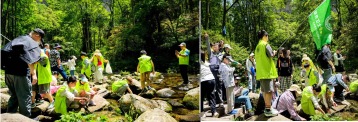 依托大鲵保护研学成果,志愿者团队走进张家界森林公园金边溪,面向游客宣讲生态保护理念,结合实例阐明保护溪流与大鲵栖息地的关系,同时开展垃圾清理与手工作品展示,引导文明旅游。