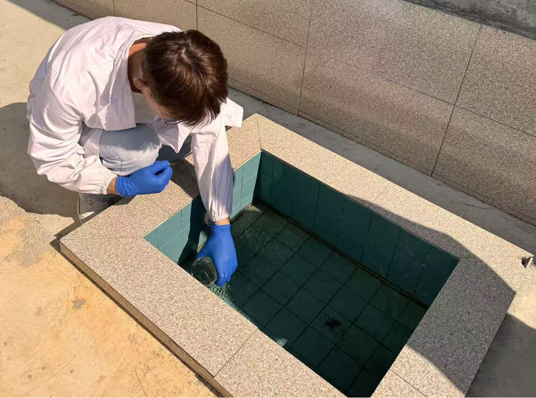 “水样检测明底数,技术赋能护清流”。在韶山生态环境分局马站长及其同事杨倩的指导下,志愿团队在集中式污水处理设施、典型水环境整治点设置3个采样点,现场开展pH、溶解氧等指标检测。过程中,团队以“理论讲解+实操演示”的方式,向村委会干部、村民细致讲解采样规范与水质检测流程,让大家直观了解“如何判断水质好坏”。