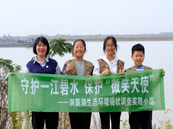 近日,在绿色卫士——长沙环境保护职业技术学院樊晶晶老师的的带领和指导下,三位小学生来到了向往已久的江豚主要栖息地之一——洞庭湖进行实地考察,和当地的江豚保护志愿者——江豚格格、岳阳市洞庭湖江豚保护中心胡强主任一道登上了巡逻船,亲眼看到了江豚欢跃水面的美景,听到了江豚保护的故事,了解了当前江豚保护的困境。