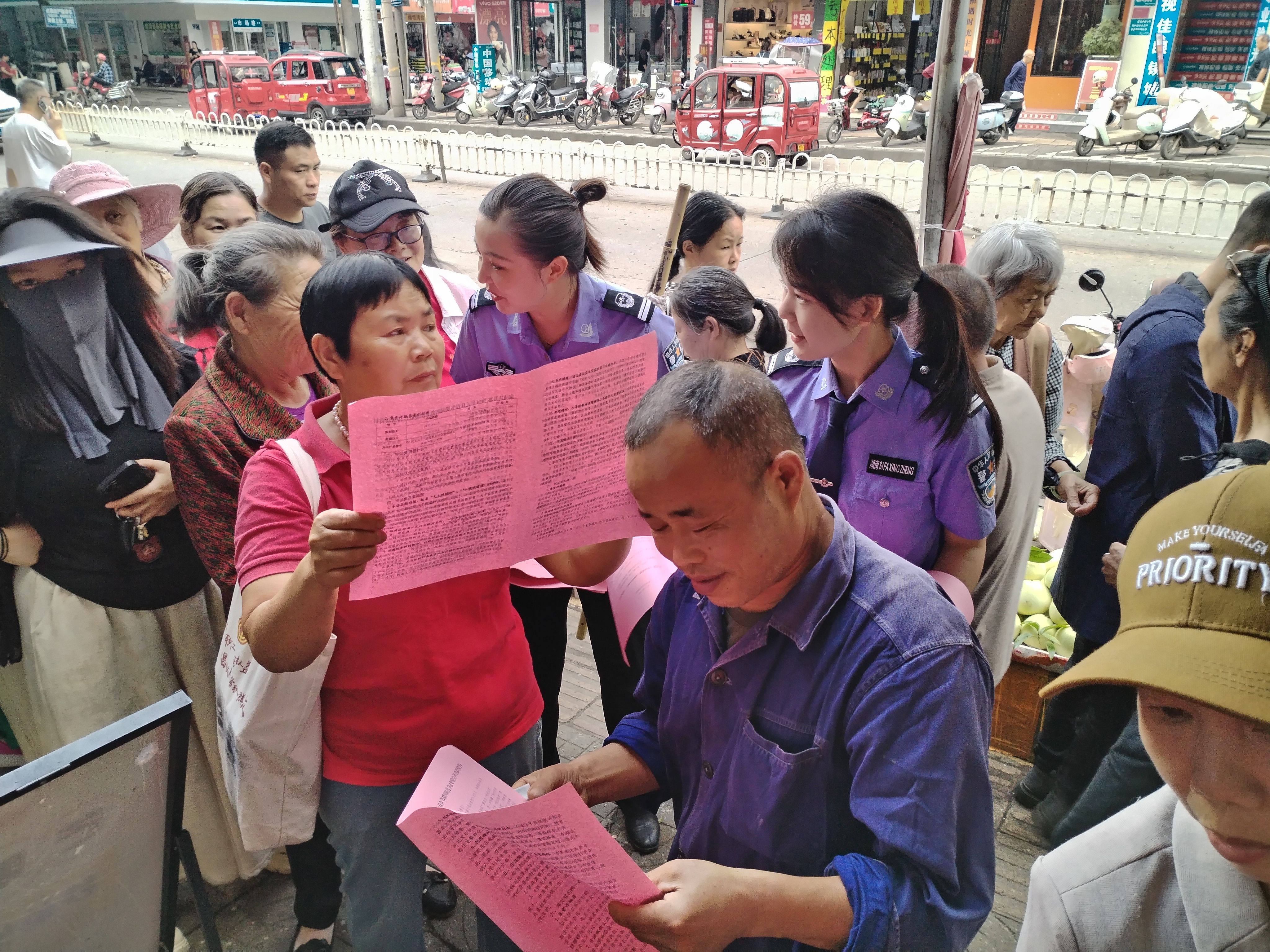 准备完毕,工作人员与志愿者组成宣传队,在溆浦县朝阳路沿线,面向过往行人、商铺经营者及菜市场摊主开展流动普法宣传。通过发放《民法典与生态环境》宣传折页、面对面现场讲解等方式,重点普及《民法典》中“污染环境致损侵权责任”“生态环境修复责任”等条文。宣传队员以通俗易懂的语言解释破坏生态的法律后果,同时,宣传保守国家秘密相关法律知识,强化公众国家安全意识。