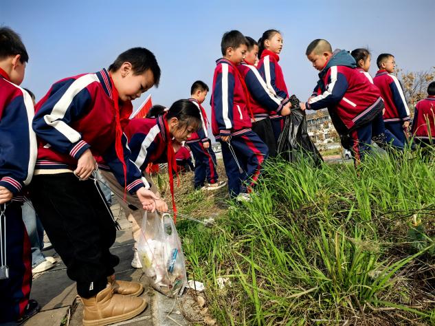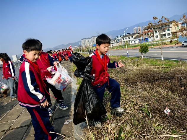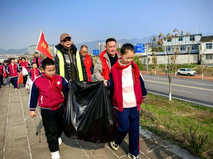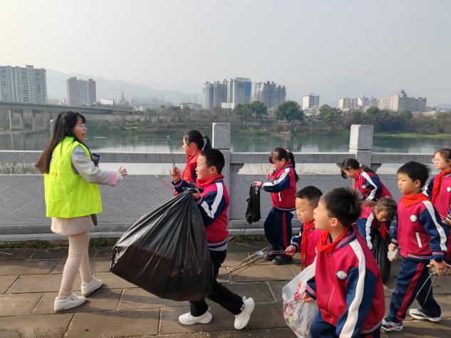 在激昂的氛围中,净堤行动正式拉开帷幕。阳湖坪小学的孩子们化身“绿色小卫士”,手持垃圾夹与垃圾袋,沿着河堤认真清理垃圾。在校长、老师们和公益组织成员的带领下,不放过任何一个角落,将烟头、纸屑、塑料瓶等一一捡起,分类投放。