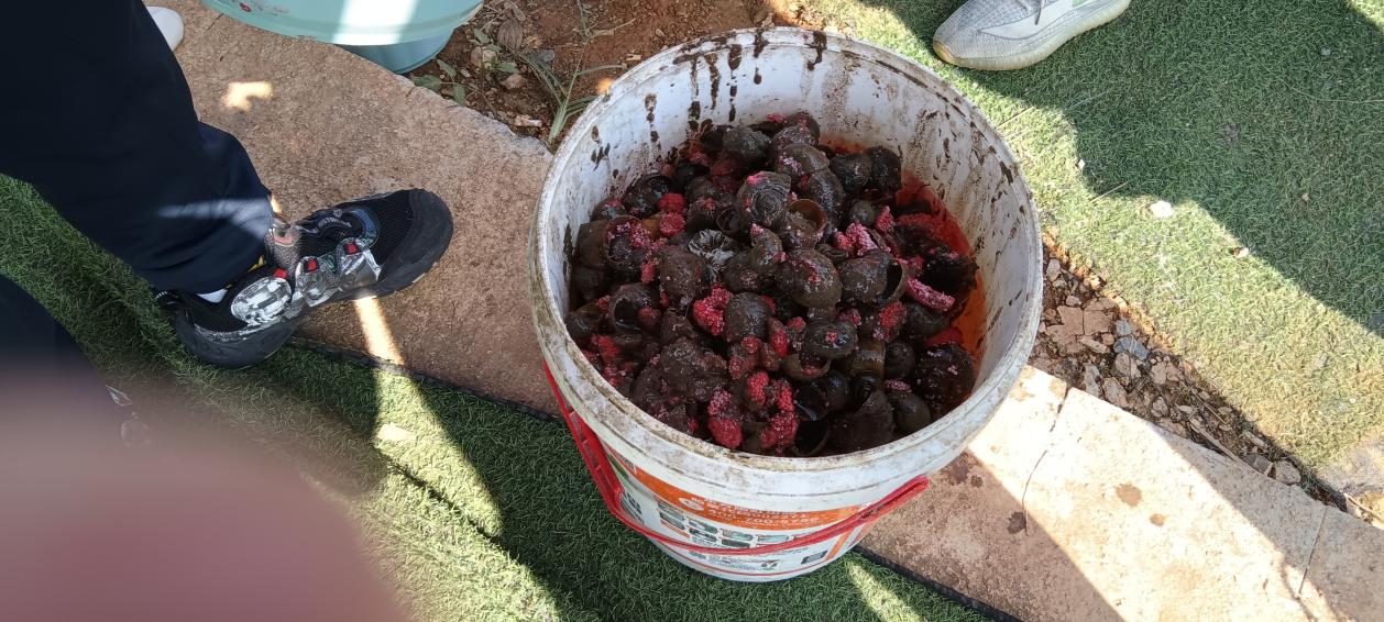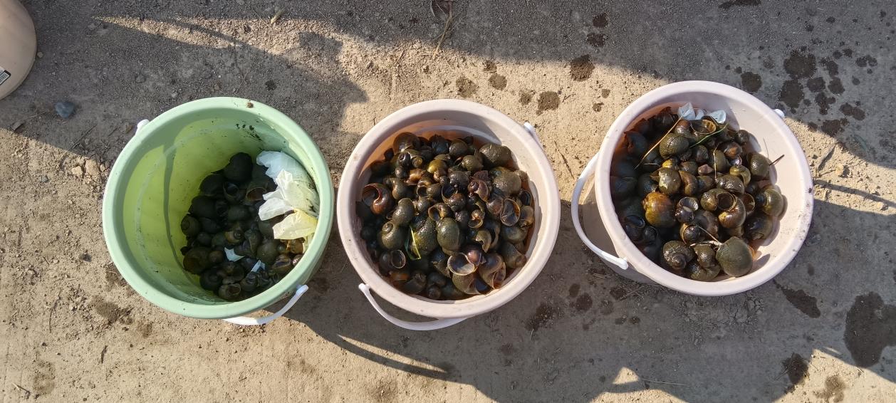 两场活动共清理福寿螺及螺卵上百斤,全部交由两个乡镇工作人员进行了科学填埋处理。