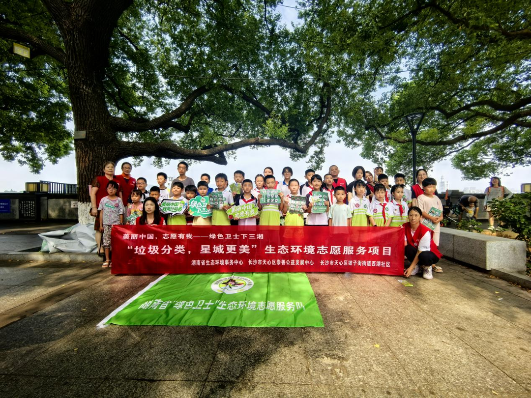 近日,在天心区坡子街街道生态事务中心、天心区坡子街街道西湖社区、坡子街社区的支持下,“美丽中国,志愿有我—绿色卫士下三湘”“同护湘江水·共享星城美”青少年环保活动在杜甫江阁旁顺利开展。此次活动由湖南省生态环境事务中主办,长沙市天心区崇善公益发展中心承心办。30余名充满活力的青少年化身“绿色小卫士”,通过寓教于乐的垃圾分类游园会形式,将环保理念播撒在母亲河畔,为守护星城长沙的碧水蓝天注入蓬勃的青春力量。