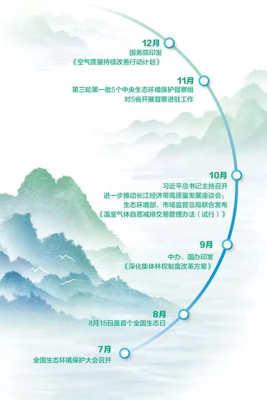 总结新时代10年的实践经验,我们对生态文明建设的规律性认识不断深化。2023年是我国生态文明建设道路上具有里程碑意义的一年。这一年,我国天更蓝、地更绿、水更清,美丽中国建设交出满意答卷,人民群众获得感、幸福感、安全感显著增强。这一年,全国生态环境保护大会召开,我国迎来首个全国生态日,黄河保护法正式施行,“三北”工程三大标志性战役开局顺利,绿色低碳发展脚步不断加快。