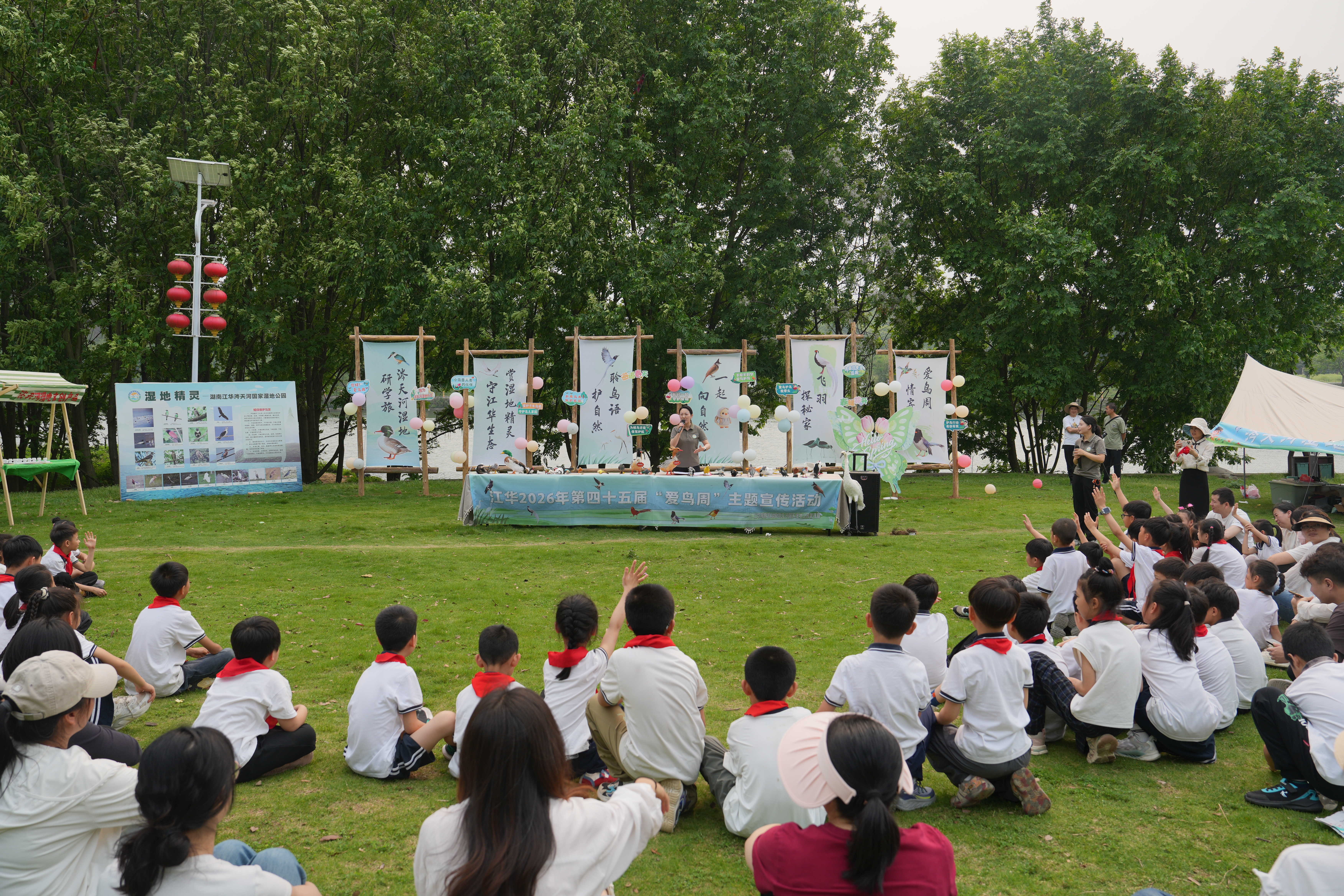 4月11日,伴着清脆鸟鸣与融融春光,湖南省生态环境教育和科普基地、江华涔天河国家湿地公园格外热闹,50组亲子家庭齐聚于此,共同开启以“守护飞羽精灵 共绘生态画卷”为主题的爱鸟周趣味研学之旅。