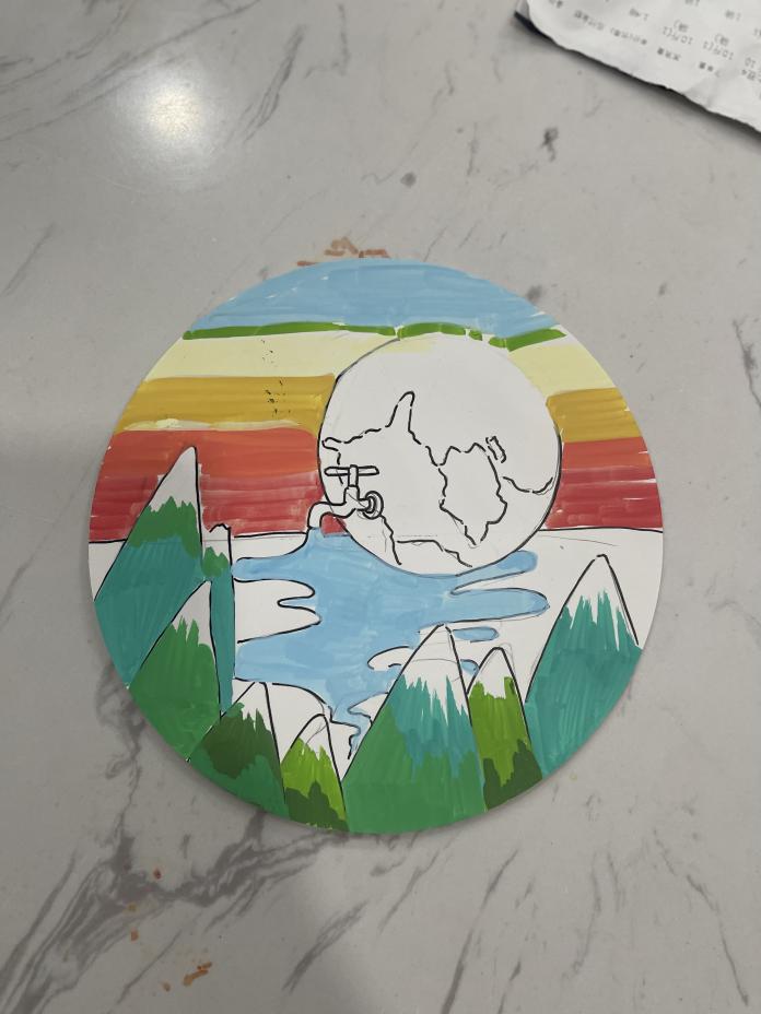 徽章设计聚焦水资源保护,画面暖色调渐变天空象征宜居的生态环境,青山绿水青绿山水则代表健康的自然系统;两者与“地球水龙头”呼应,强调水资源是维持生态与人类生存的核心纽带。地球造型搭配水龙头,直观传递“地球是人类的水资源容器”的隐喻——地球上的淡水资源并非取之不尽,需像珍惜水龙头的水流一样节约每一滴水,传递“珍惜地球资源、守护生态家园”的环保主张。